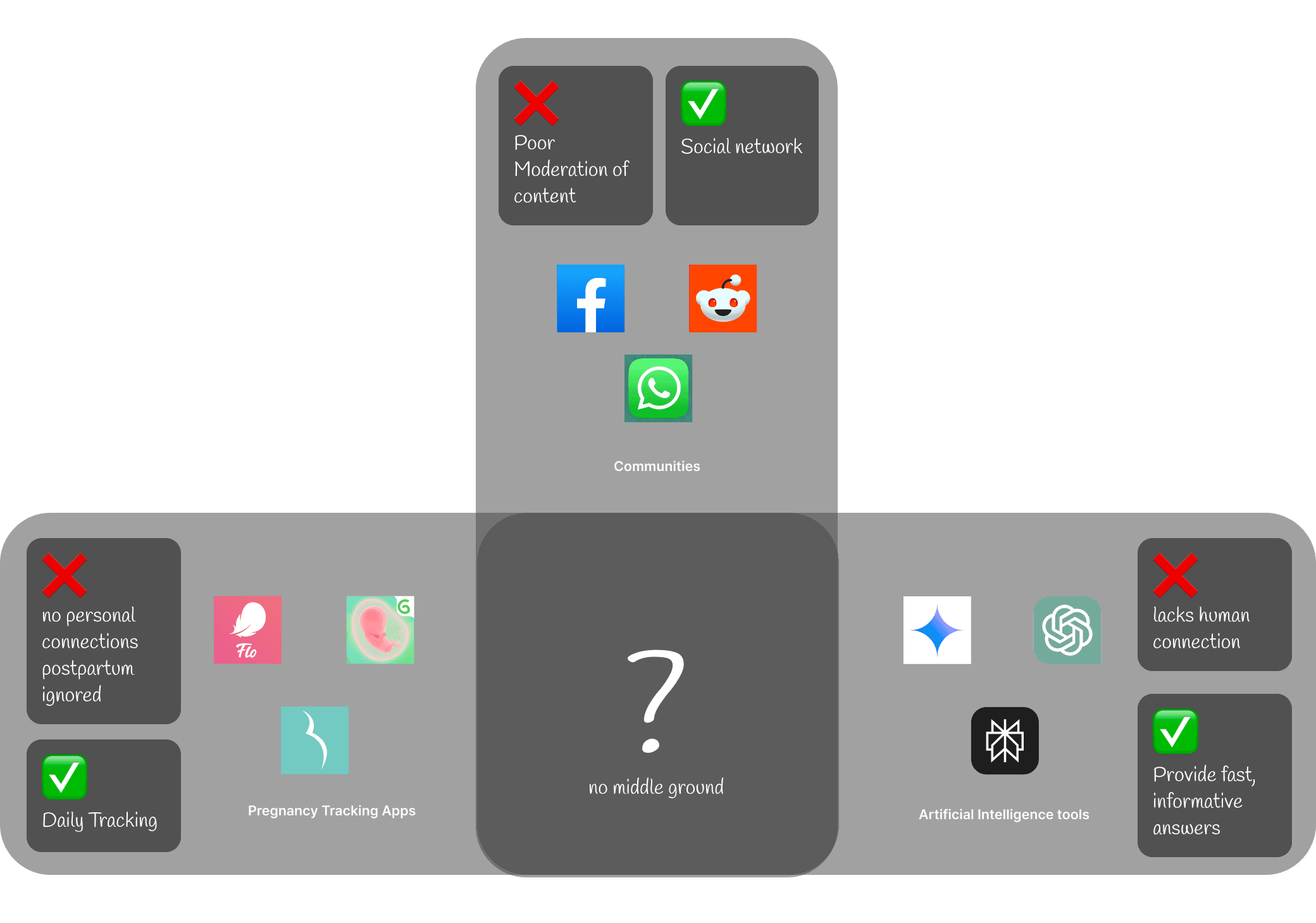 We conducted a content analysis by exploring social media platforms such as Reddit, Instagram, and Facebook to better understand the conversations and challenges women face during pregnancy and postpartum recovery.