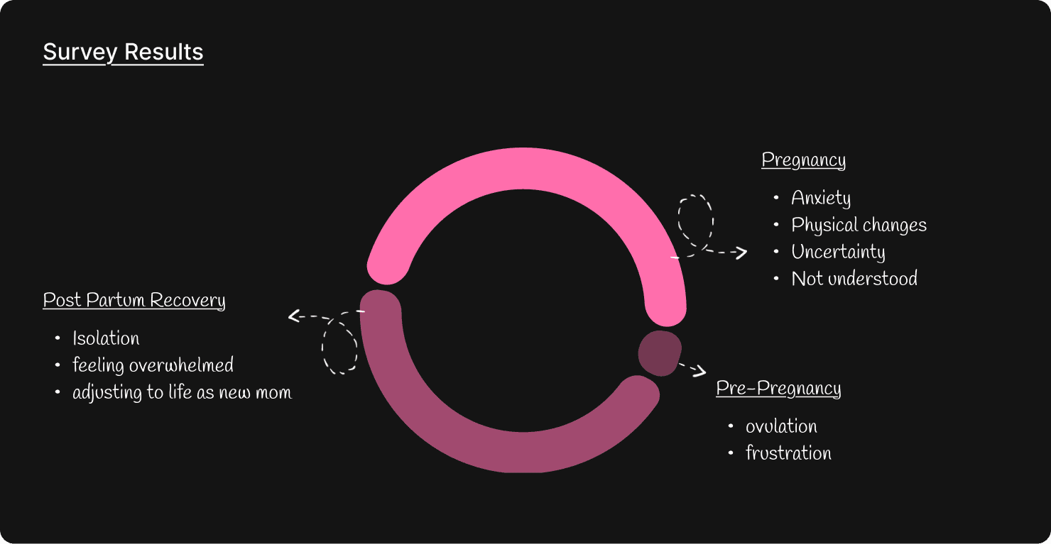 Conducted interviews to gather personal insights into the emotional, physical, and mental challenges women face during pregnancy and postpartum recovery, enabling us to better understand their needs and pain points.